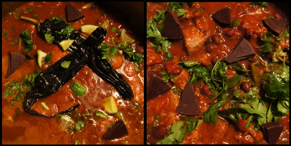 The Chocolate Chili spice from VT is so delicious and smells absolutely amazing. You can find it at natural food stores, where they’ll likely have sniffing testers so you can get a good idea of its flavor before using it. It fits in so well with the various chocolates and beer in the chili.