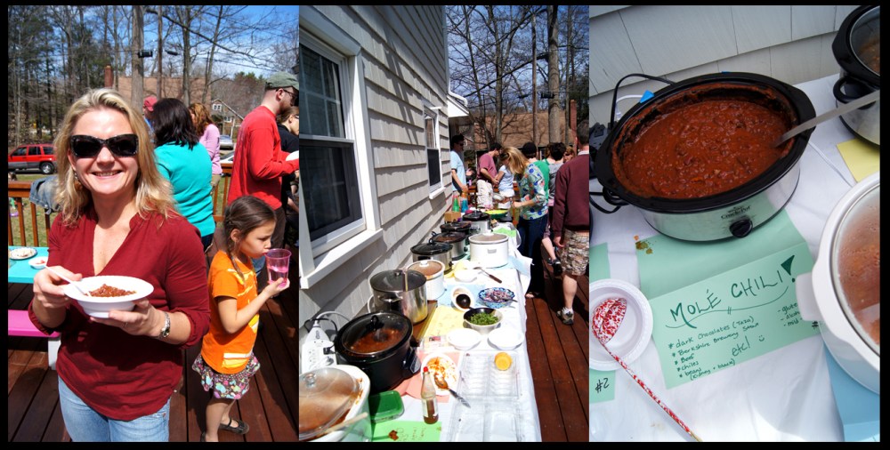 I love any kind of event, like a potluck, where guests have to bring a dish. I think it’s so fun to see what people come up with and what flavors they like the most. To bring in the spring, a friend recently hosted a chili cook-off. I was impressed with the variety in chilis people brought: chili verde with tomatillos and pork, a spicy chili with almost an entire bottle of whiskey, one with quinoa, another with white beans and kale.