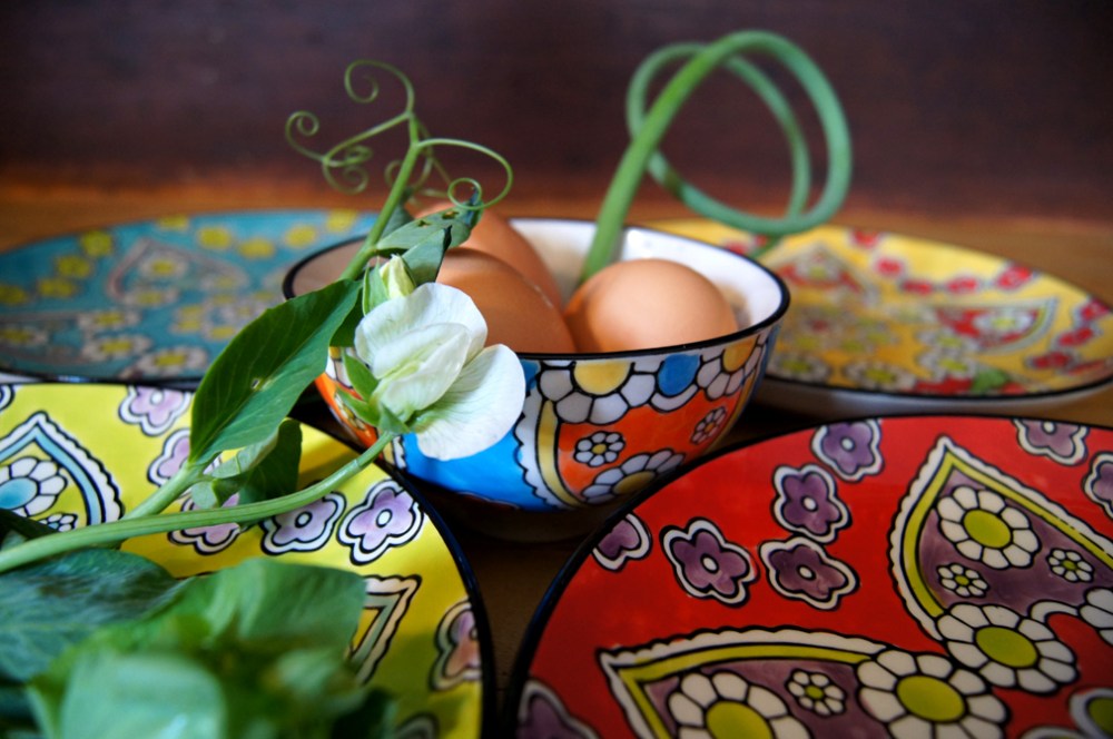 - Pea tendrils (leaves and flowers – just pick them off the shoots)