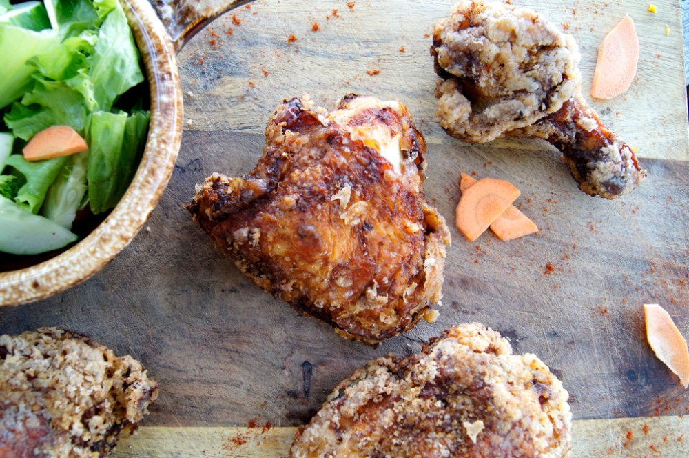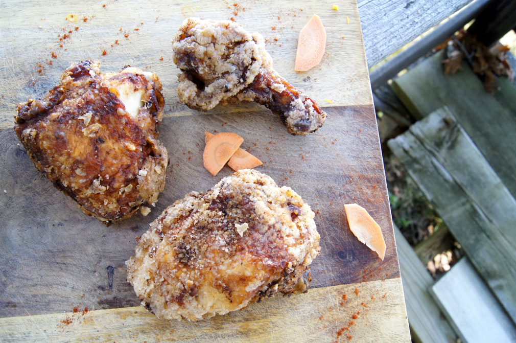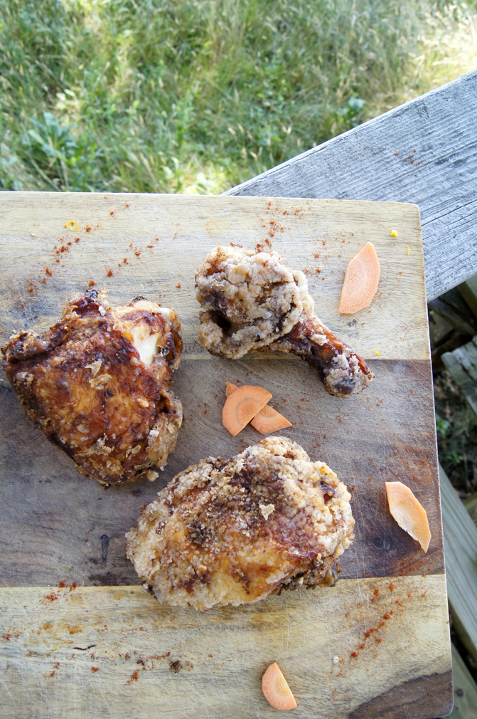 I’m not joking when I say I can taste this chicken just looking at the photos. It was crazy. Next time, I think I might try with coconut flour rather than potato starch, to give it some semblance of nutrition. I need to look more into this, but coconut flour has high fiber and protein, whereas potato starch has no fiber or protein. It’d certainly help, but fried chicken is still fried chicken. And it was soo good on such a beautiful summer day!