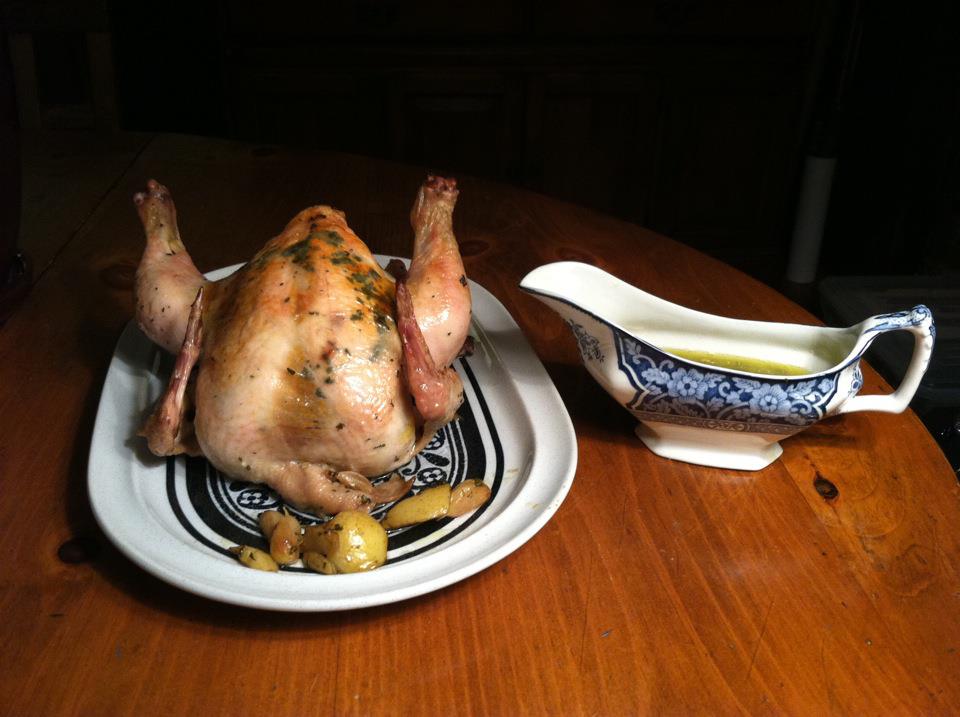 Happy 100th to Julia Child! I’ve been on a bit of a Julia kick lately, or at least she’s coming back into my radar, likely because of her 100th and smart marketing. I haven’t really been trying to perfect any one recipe lately, but instead have just been trying a bunch of different recipes as I try to expand my repertoire. This is where Julia comes in. Don’t worry, I’m not going to turn this into some Sheila and Julia thing, but her recipes are so exact and tested over and over, so I’d really like to learn some classic, standby recipes from her books. Like roasted chicken. Simple, easy, and delicious, but so important to know how to do right. This is not a Julia recipe, but has her stamp of approval so thought I’d give it a try. Unfortunately I left my camera at my friend’s house – I think I’ve turned into Hansel and Gretel, or just Gretel, and leave a trail everywhere I go – so my iPhone photos will have to suffice for the next few days.