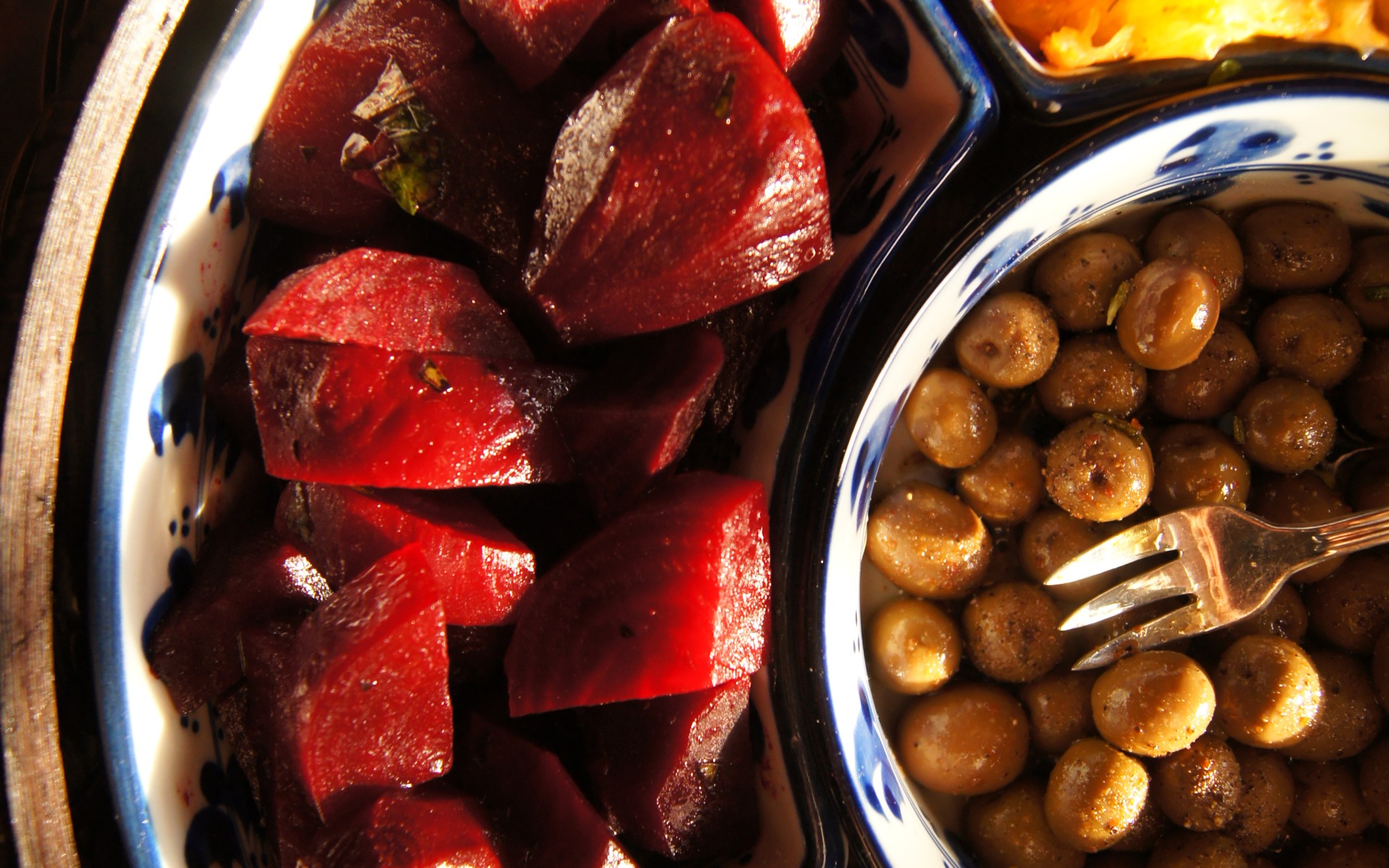 - Peel the beets, cut into bite-sized pieces, and put in a bowl. Combine the remaining ingredients, pour over the beets, and let marinate for 1 hour before serving. Serve at room temperature. (God I love that room temperature serving!!)