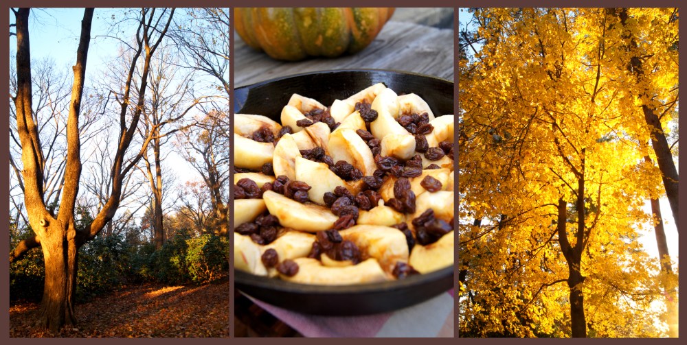 - Set the skillet over low heat, then slowly raise it to medium, and cook until the juices from the apples, along with the butter and sugar, being to bubble and turn a dark yellowish-brown, about 40 minutes. If the rings on your burner are small, move the skillet around every 10 minutes or so to ensure even cooking. When finished, remove the skillet from the heat and let stand until cool. The dish can be prepared early in the day up to this point. Cover gently and let stand in a cool place without disturbing the apples.