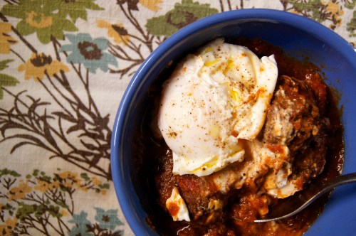 Grass-fed lamb meatballs with greek yogurt & a poached egg