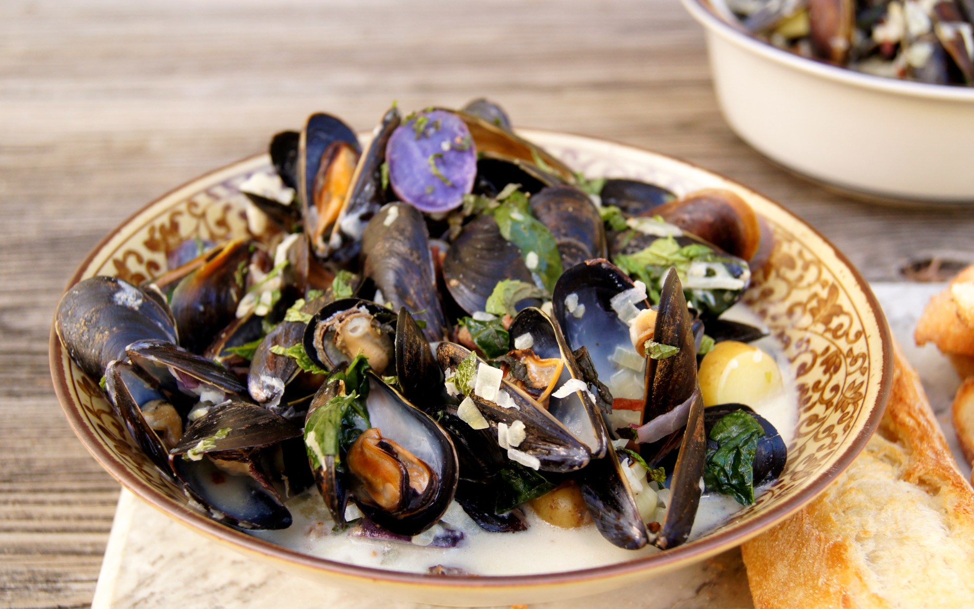 2 Replies to “Coconut-Mint Mussels with Bacon & Kale”