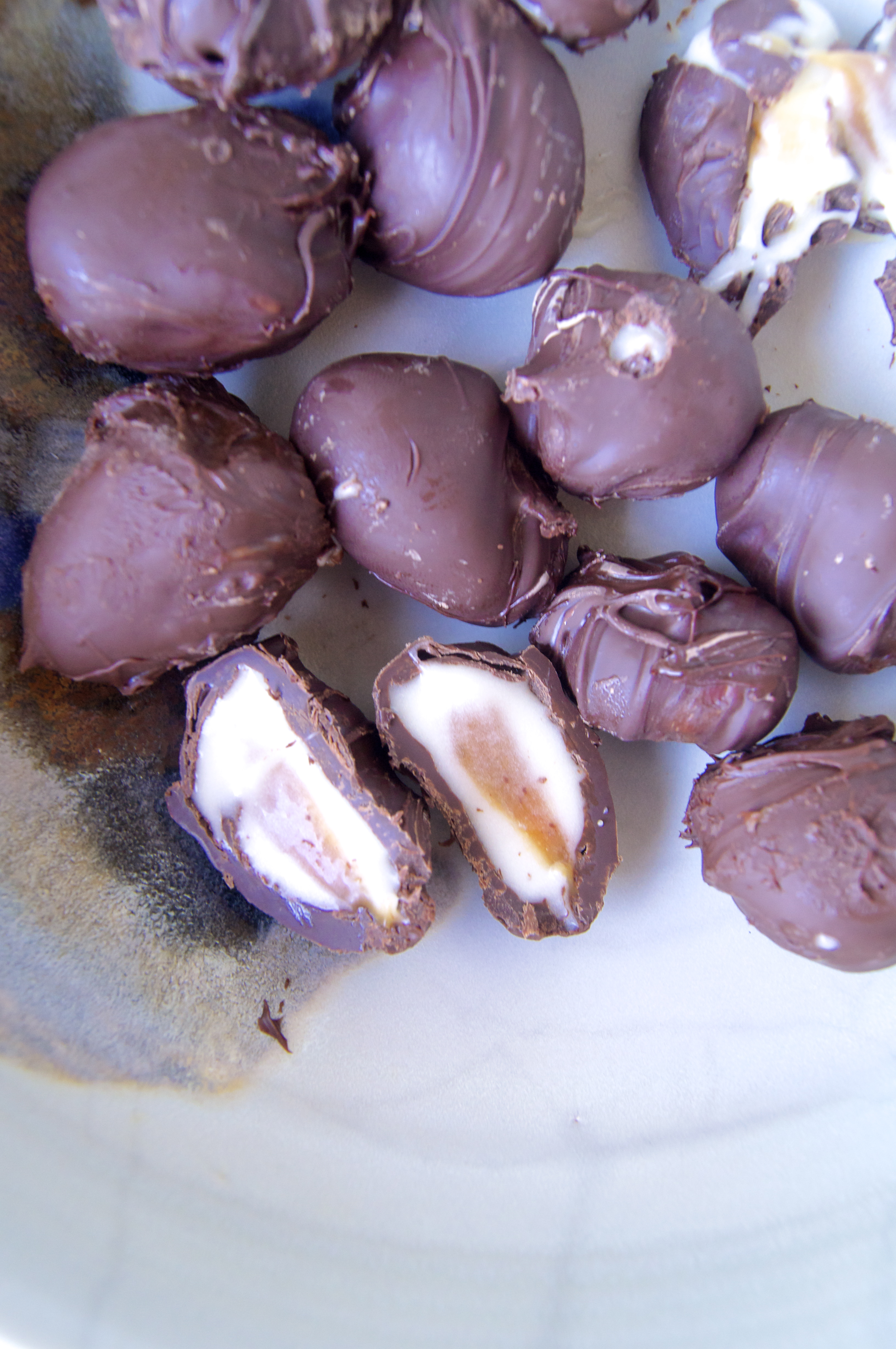 Here are my quirky little Cadbury eggs, worts and all. No perfect little egg with a smooth chocolate exterior. I’m not there yet in my creme egg-making career, and if you aren’t either, don’t worry. They’re still delicious. And you don’t even need a stand mixer to make these – I don’t have one – although it’d help.