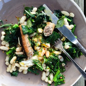 italian sausage with cannel ini beans, broccoli rabe, herbs, and an egg