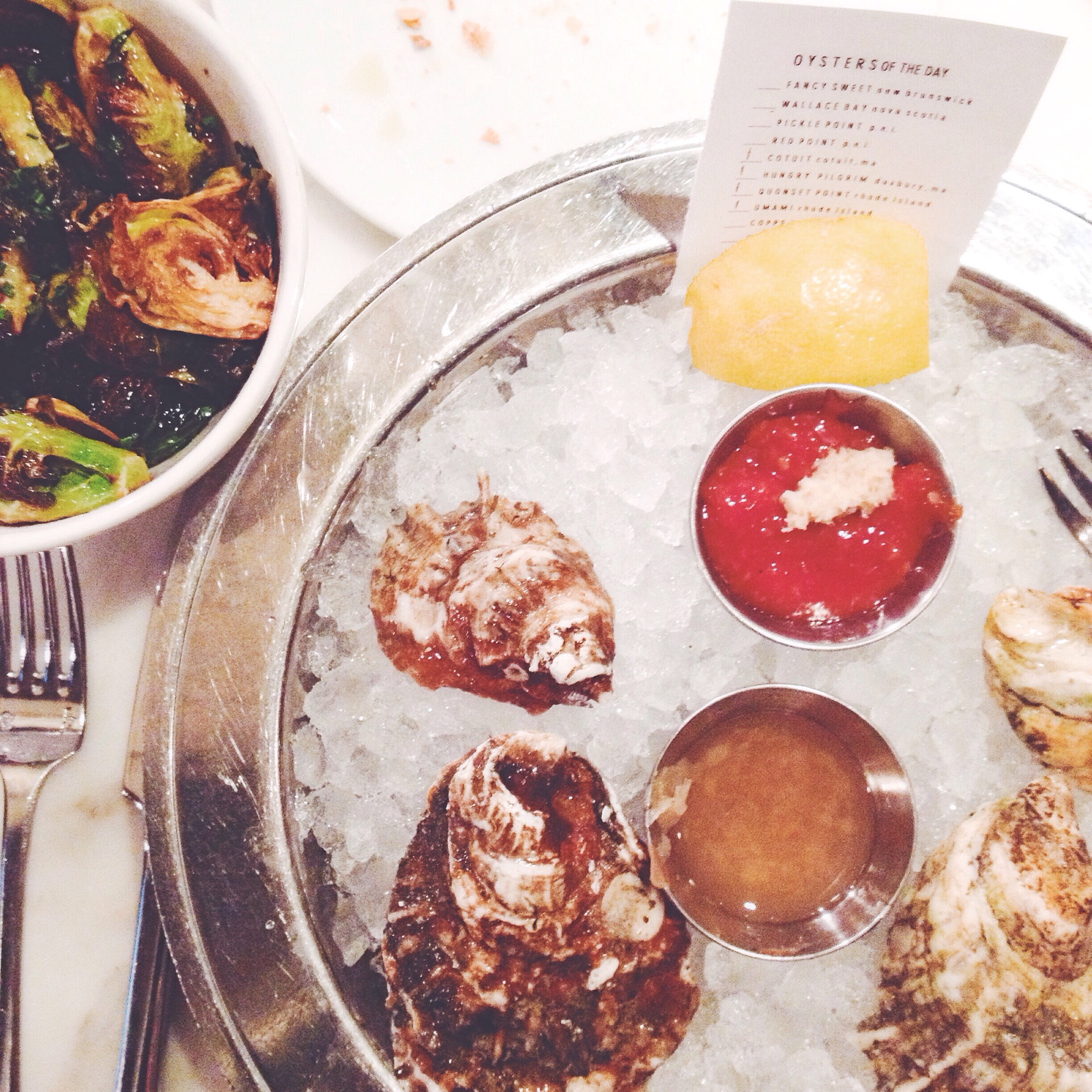 oysters and fried brussels sprouts at B&G