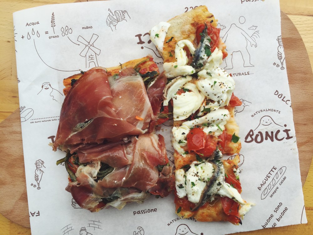 - Pizzarium Bonci: I had one of my favorite pizzas ever here. Hearty little squares sold by the weight, I devoured the mozzarella, tomato, and anchovy. It was perfect, and in a great working class neighborhood close to a top-notch salumeria, just a short walk from the Vatican.