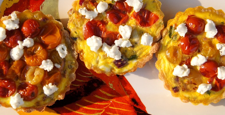 Gluten-Free Goat Cheese & Pickled Cherry Tomato Tartlets