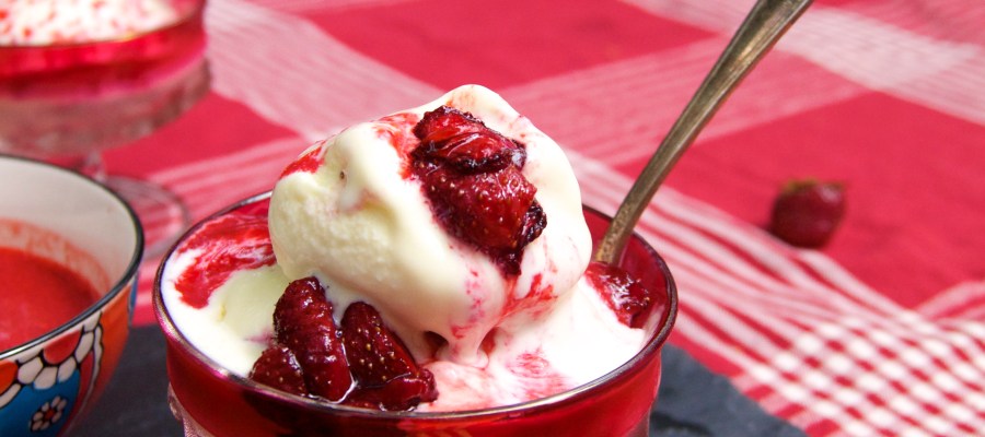 This may be one of the most ridiculous things I’ve ever made. It’s like strawberry cheesecake in a bowl, an indulgent upgrade, as if ice cream wasn’t decadent enough before.  Goat. Cheese. Ice. Cream. Seriously? I suppose it may sound a bit strange, but trust me on this one. It’s